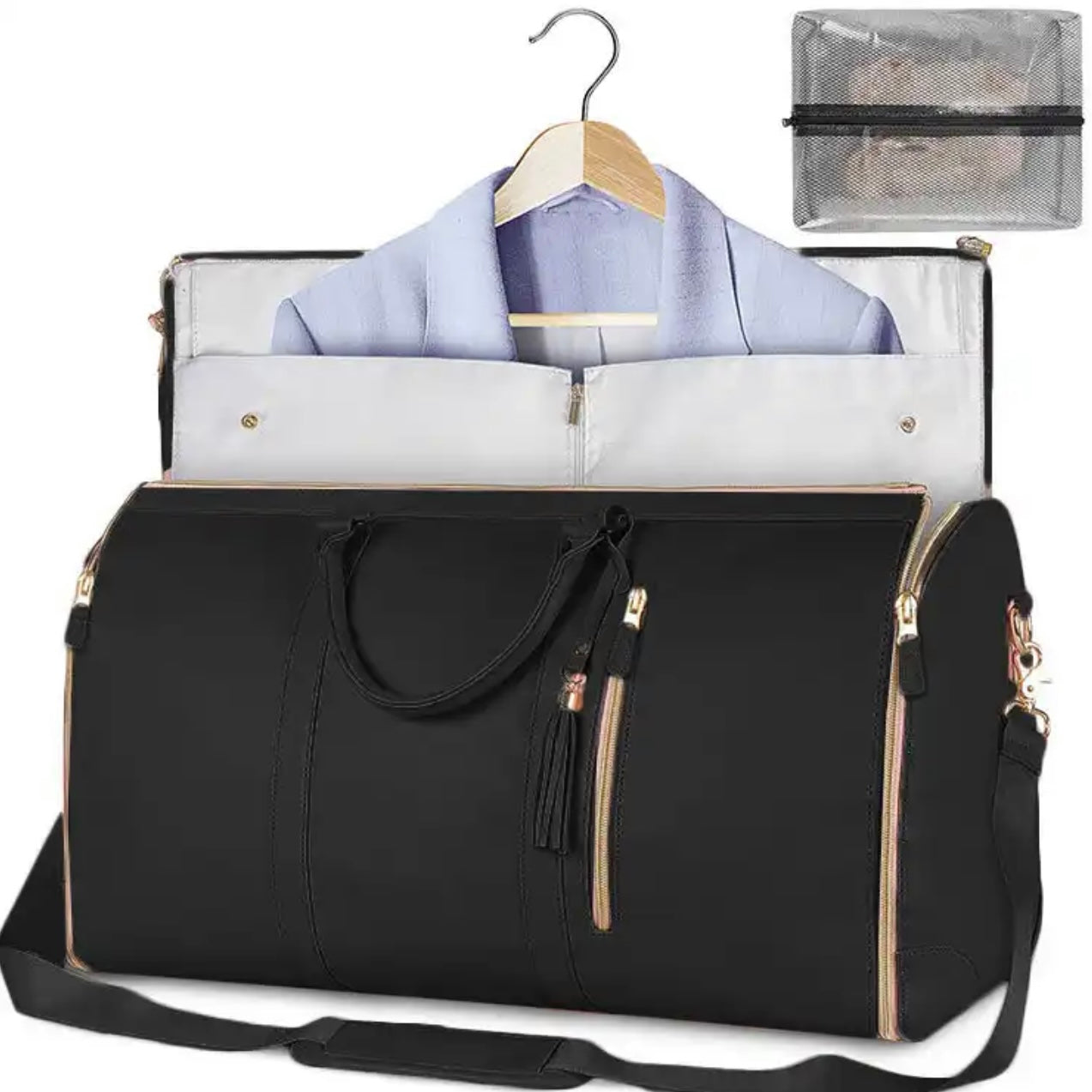 Effortlessly pack your dresses or suits by hanging them up in your Luxora Bag, then zip it up to reveal a spacious compartment for everything else you need. No more wrinkled clothes when you arrive at your destination!