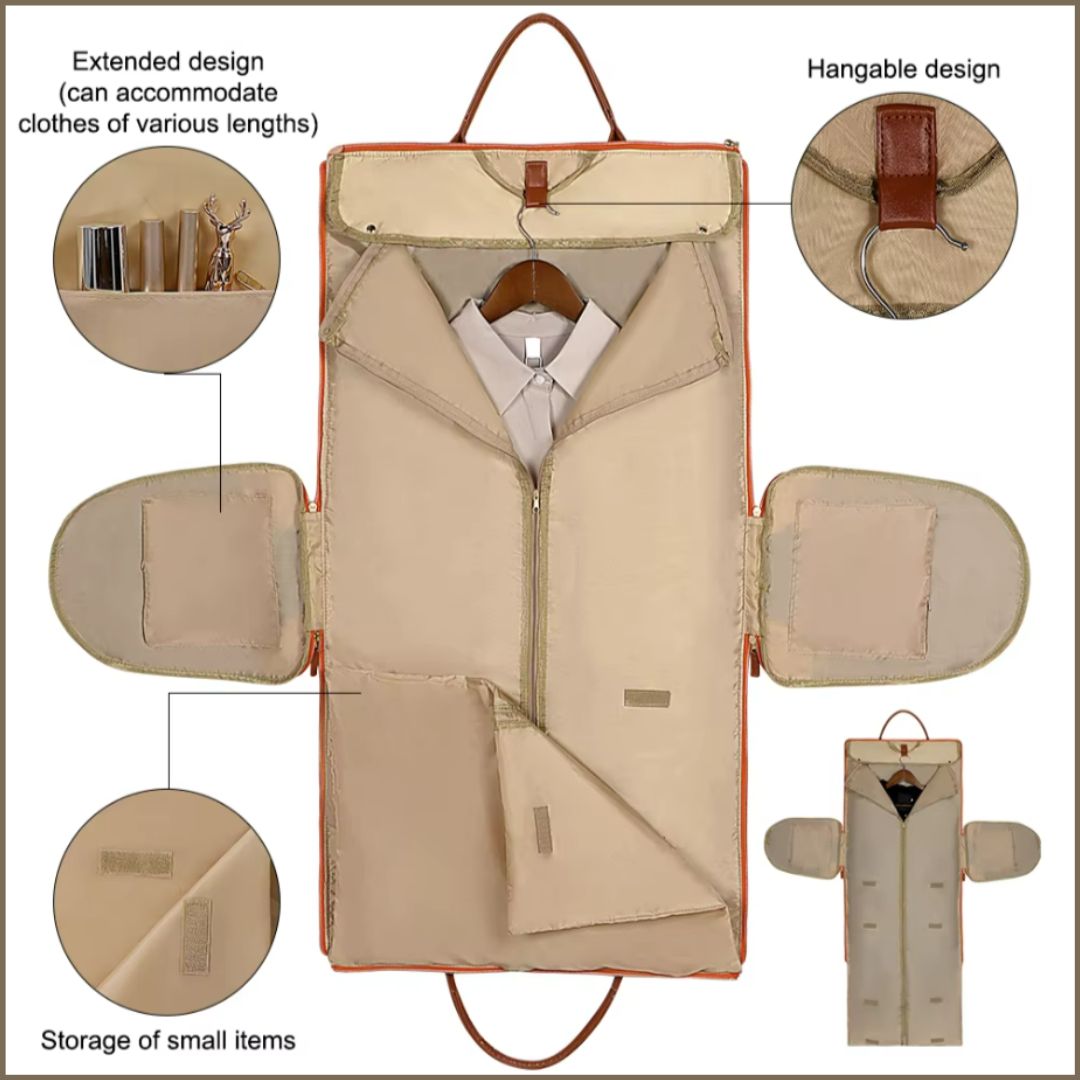 We are all annoyed to iron our clothes when we travel. No more needed. Get this bag and forget about ironing your outfits. Adjustable clips are found on the bottom to fix the clothes. There are also 2 buckles inside the hanging bag to keep the garment flat.